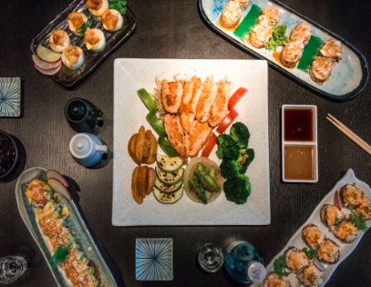 Camarones rellenos de nuestra salsa tampico y chipotle envueltos en pasta tempura, acompañados con salsa de aguacate y wasabi.