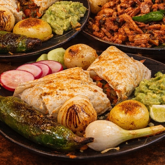 JAMÓN, SALCHICHA, QUESO TOCINO, CEBOLLA, AGUACATE, TOMATE, FRIJOL