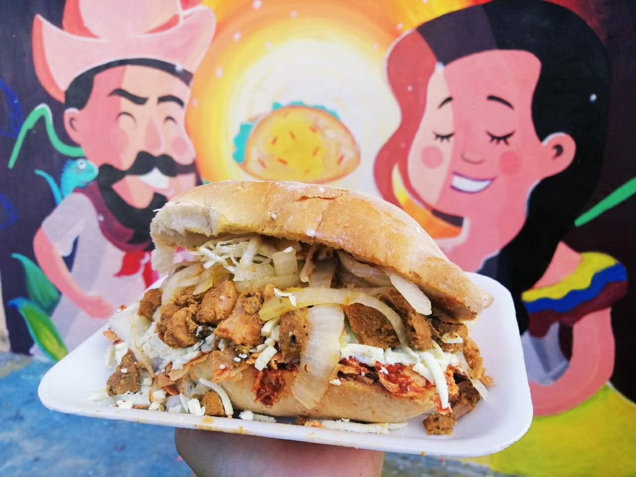 1 Deliciosa torta de los diferente y deliciosos guisados en nuestro menú a elegir, 200 Gr de chilaquiles, crema y queso