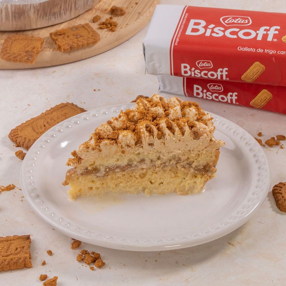 Pastel extra mojado con nuestro preparado especial de tres leches, con un relleno de crema de galleta Lotus, cubierto con chantilly sabor Lotus y decorado con un toque crujiente de galleta Lotus troceada.