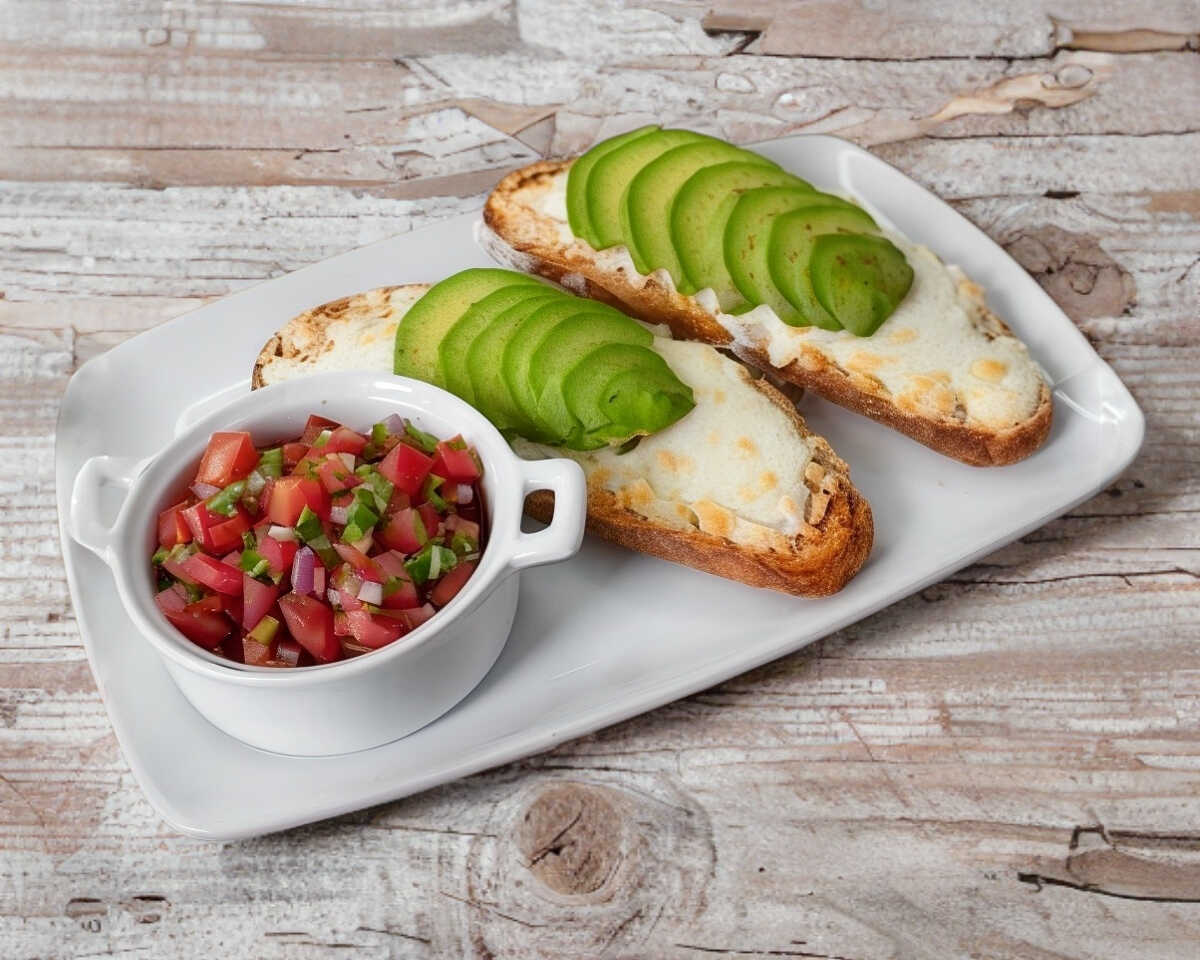 Pan de masa madre, aguacate, queso fresco, germinado de alfalfa, tomate cherry, chile quebrado, salsa macha.