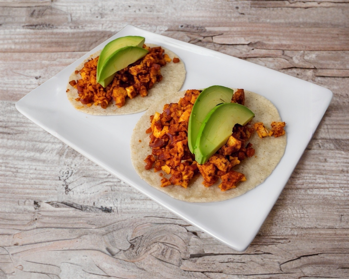 Tacos de huevo con chorizo, aguacate y salsa macha ( 2 piezas).