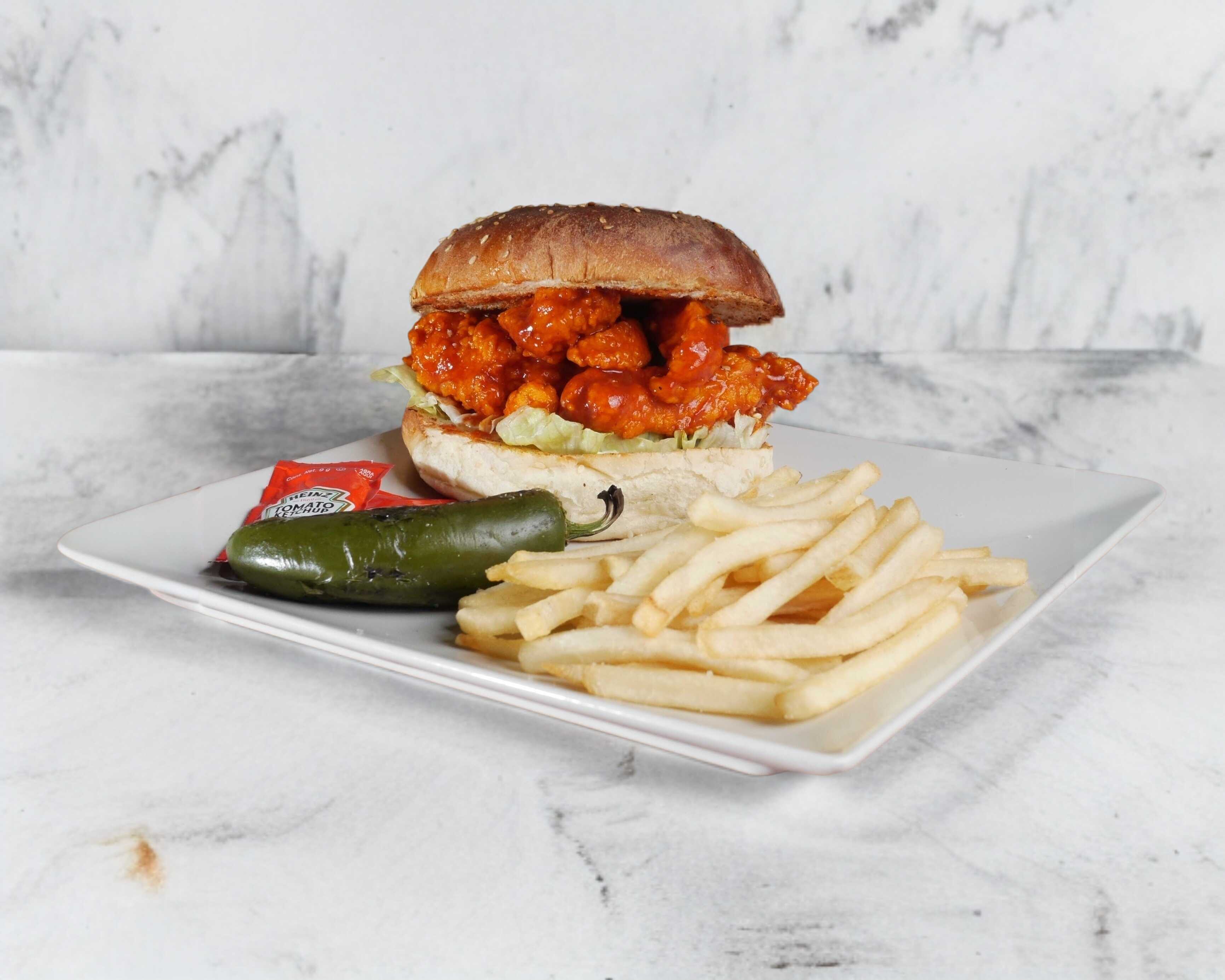 170 gr de carne de res, 200 gr de boneless elegir salsa, lechuga, mayonesa, acompañada de papas a la francesa, ranch.