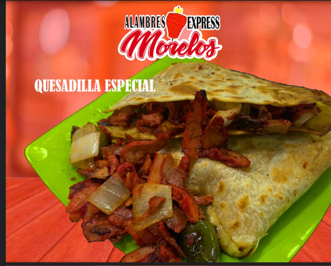 Tortilla dos veces más grande comparado con las tradicionales, queso y carne al pastor.