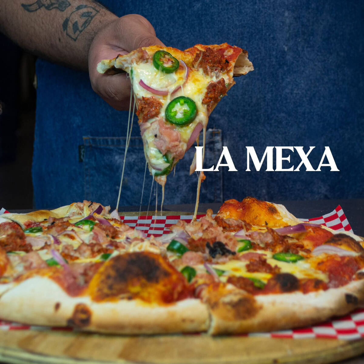 PIZZA CON BONELESS BAÑADOS EN TU SALSA FAVORITA