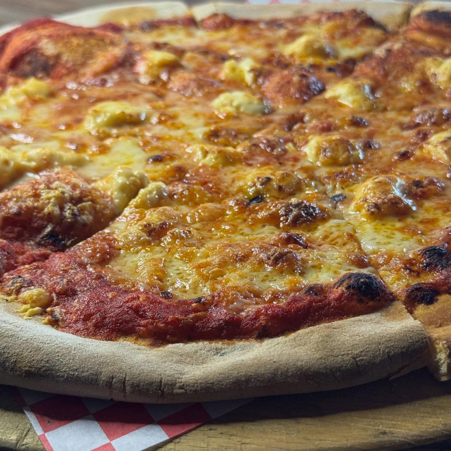 Base de salsa de tomate y nuestra mezcla de quesos.