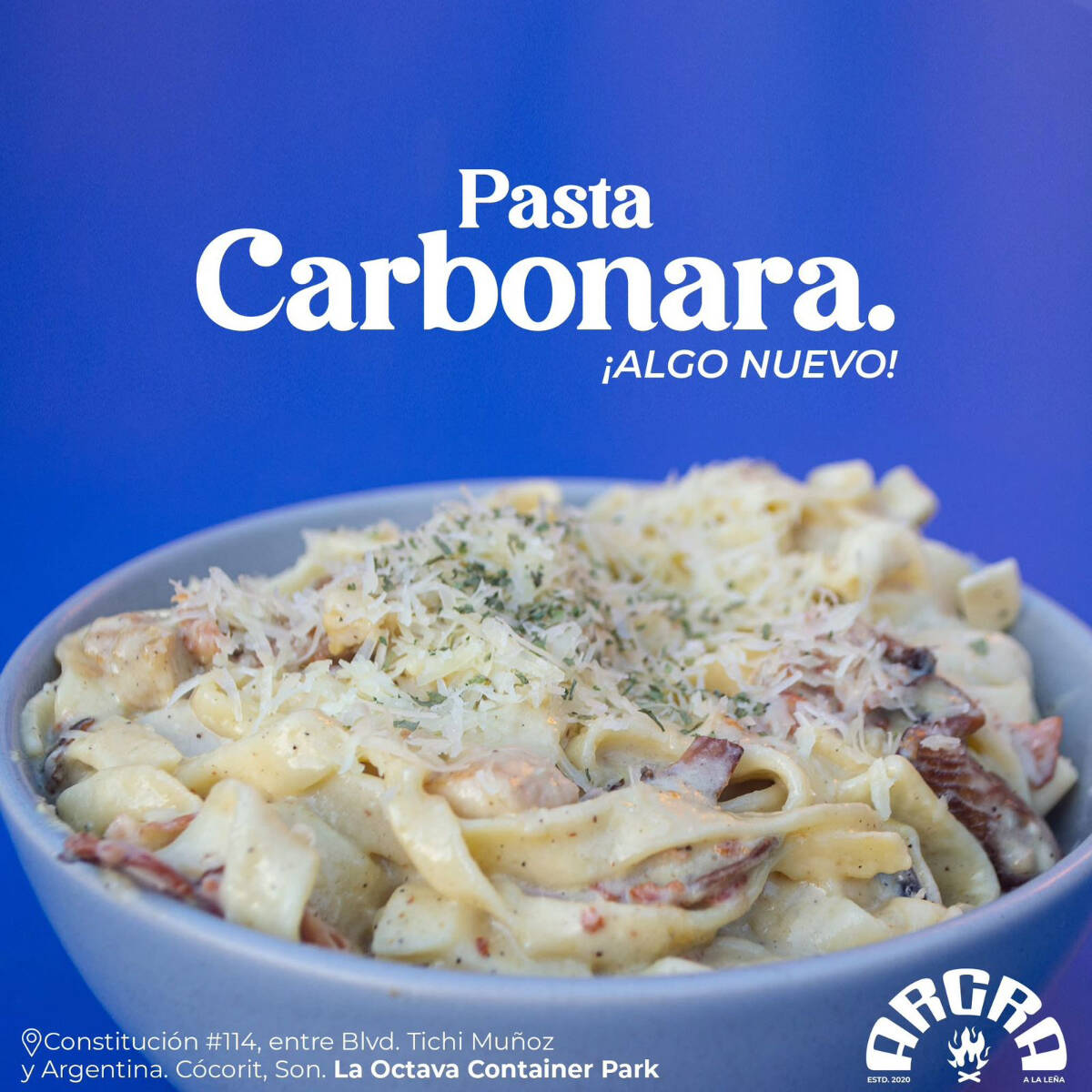 Bañada en salsa carbonara, pollo, tocino, champiñón, parmesano y perejil.