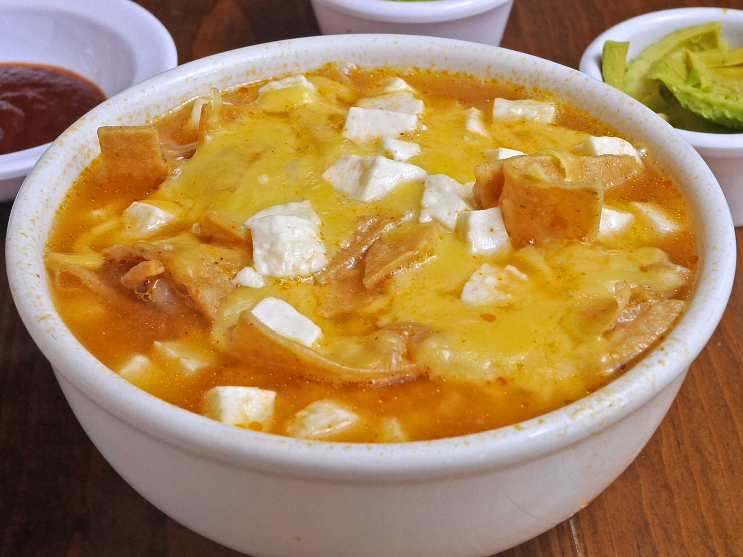 Medio litro de tirita de tortilla medio litro de consomé de pollo sazonado con el toque de la casa, aguacate, queso panela, chipotle, limón.