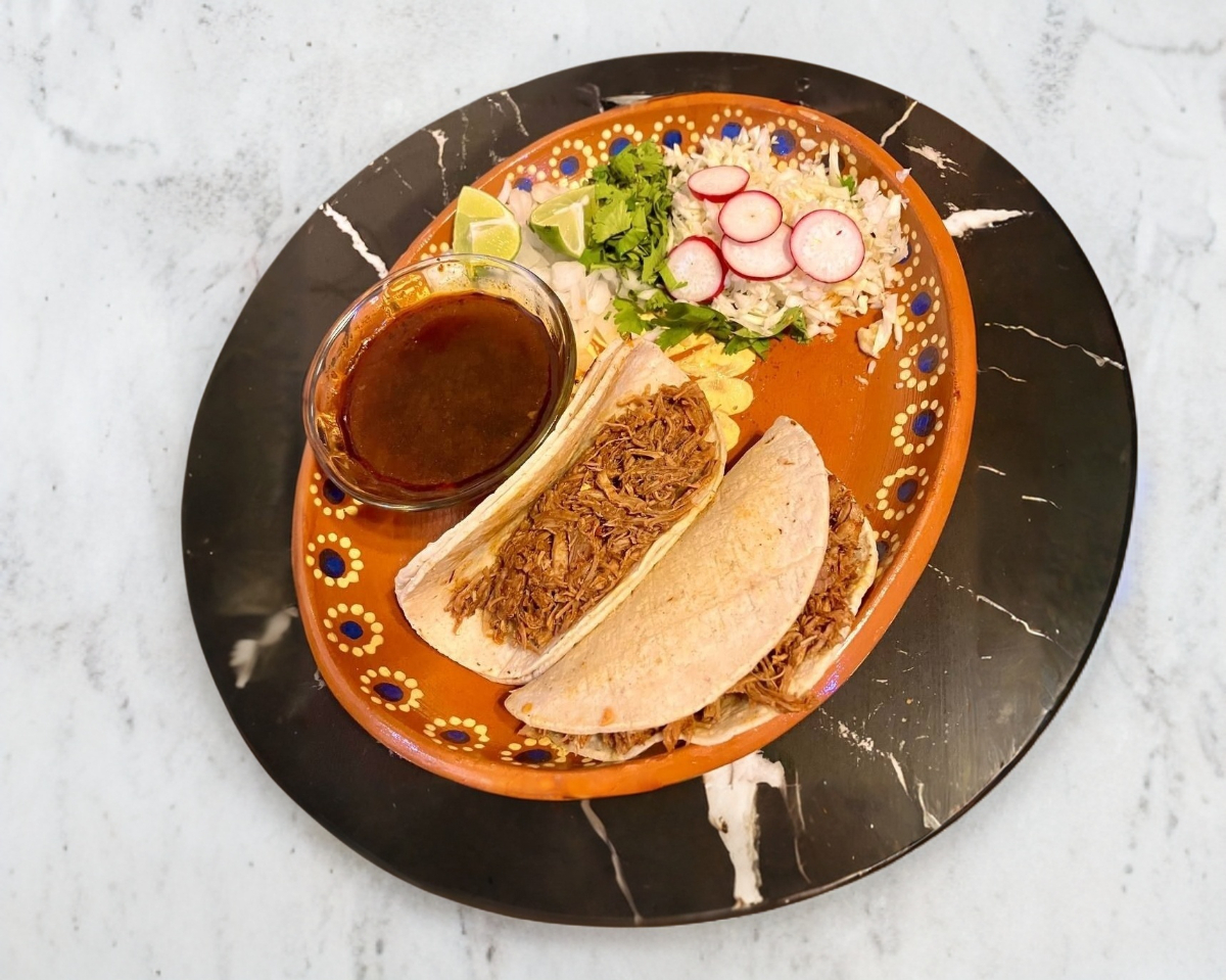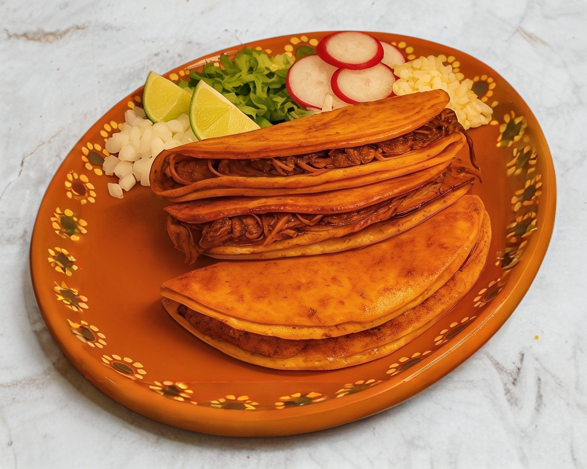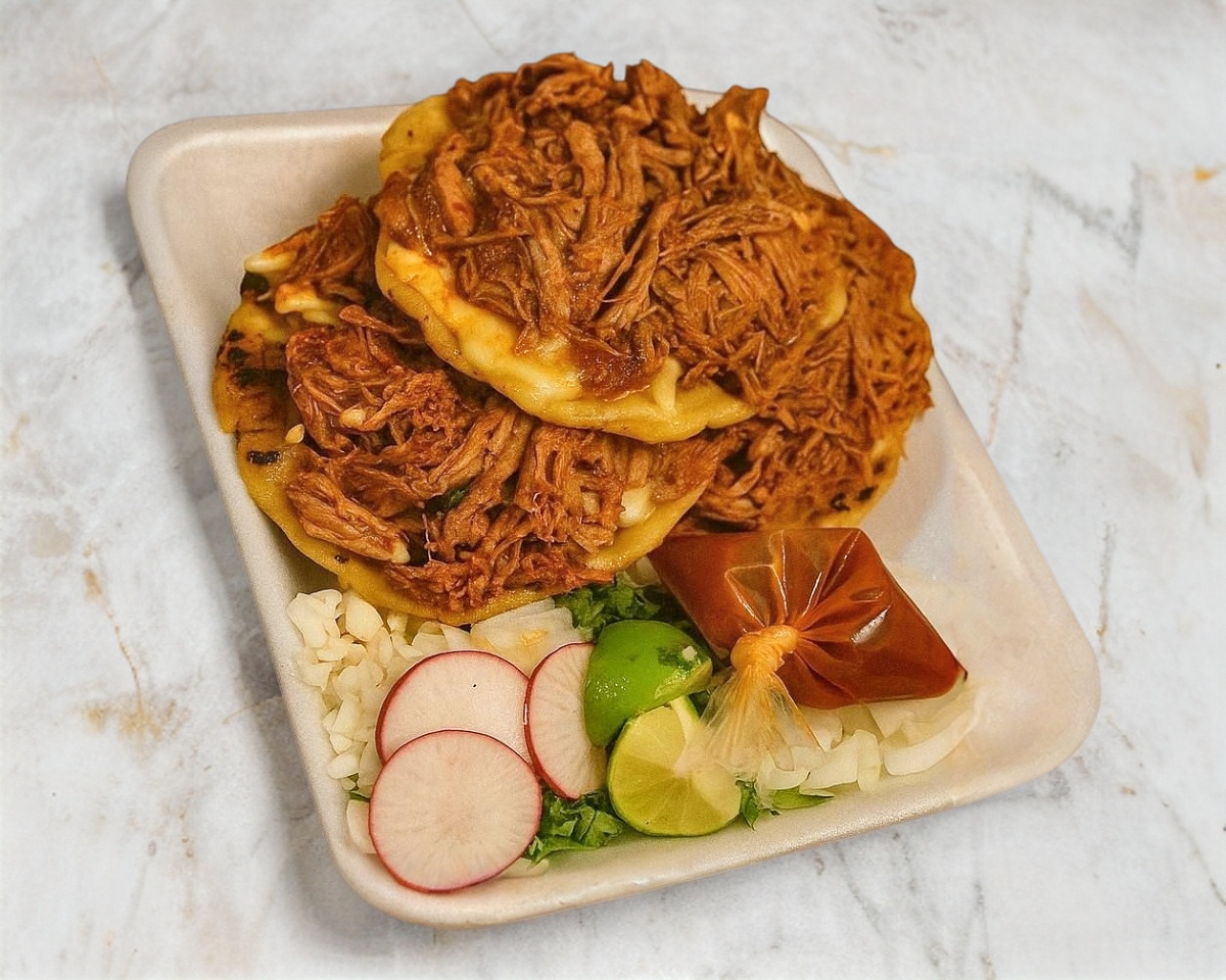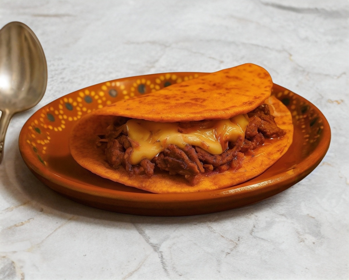 1 empanada, 1 quesabirrias y 1 taco + un vichi