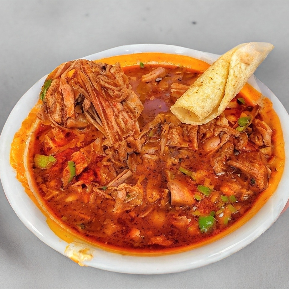1 L de consomé y carne de res. Incluye servicio de tortillas y verdura.