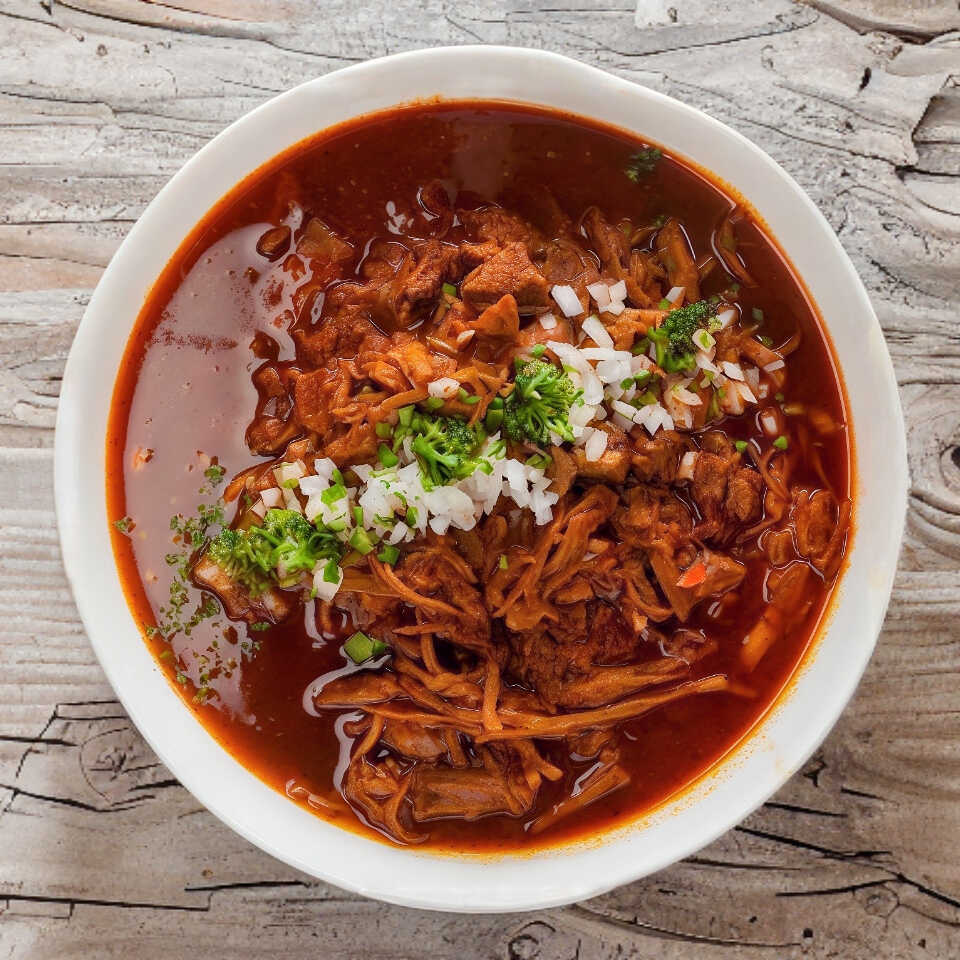 1/2 L de consomé y carne de res. Incluye servicio de tortillas y verdura.