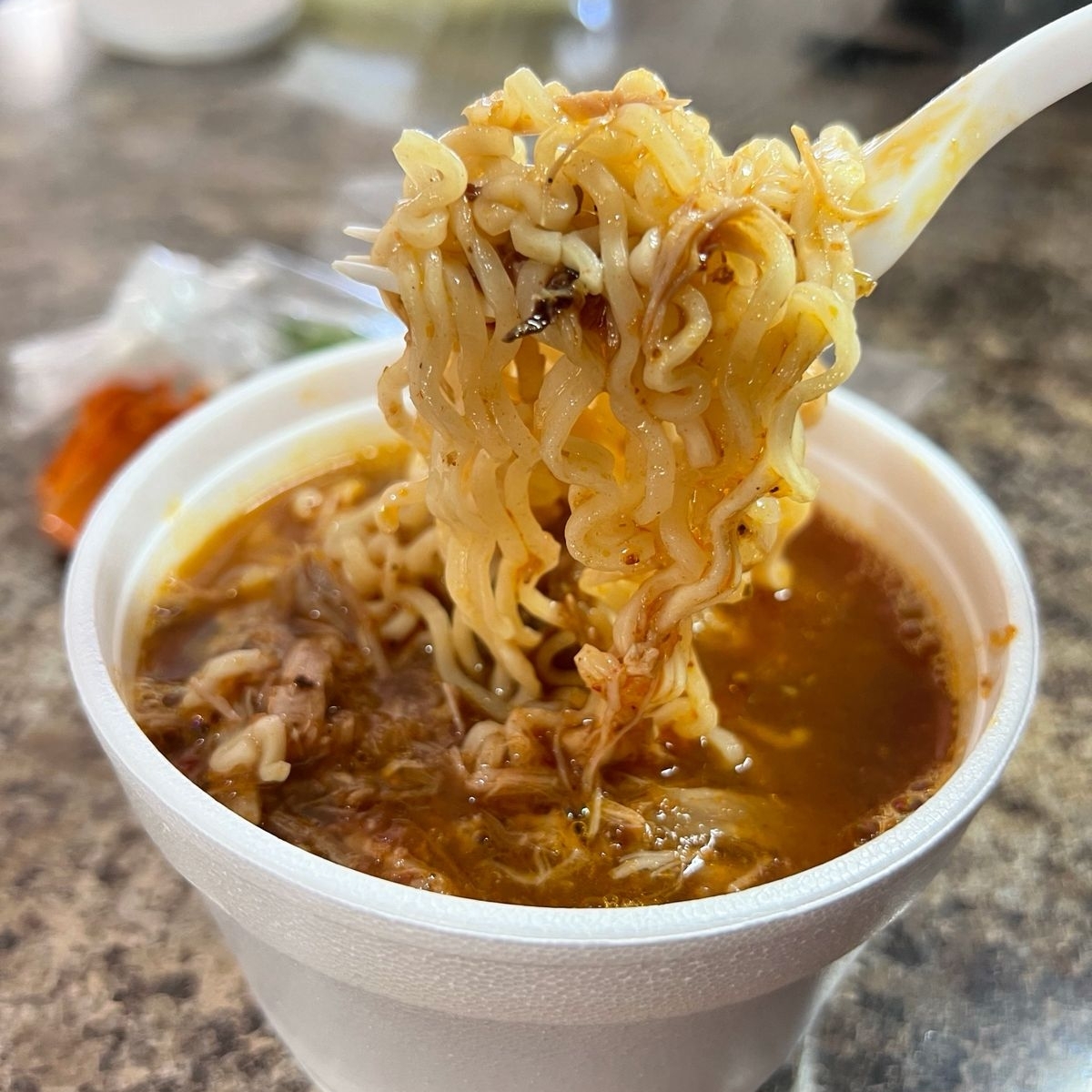 1/2 L con pasta de ramen, consomé y carne de res. Incluye servicio de verdura.