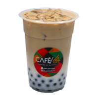 Café con leche (Animal o Vegetal) saborizado con vainilla y "Boba" (Perlitas explosivas) sabor Chocolate