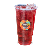 Soda Italiana sabor "cereza" servida en un vaso de 32 oz