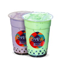 Taro con leche (Animal o Vegetal) con "Boba" (Perlitas explosivas) sabor a Bluebarry