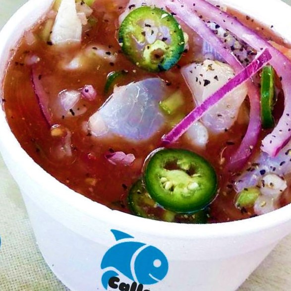 Callitos+ceviche, cebolla morada, serrano y Clamato salseado,