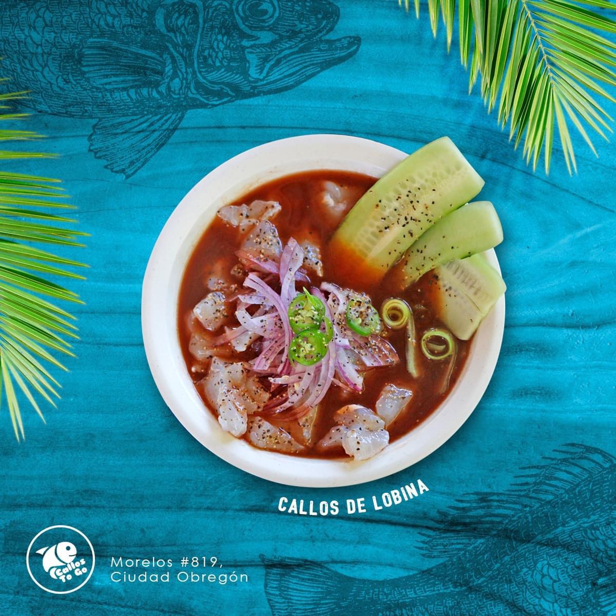 callo de lobina, camarón cocido, cebolla morada, serrano, jugo de tomate prepatado
