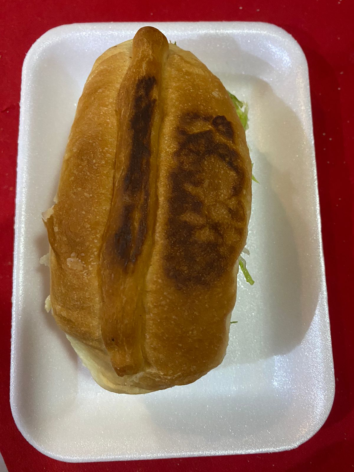 Pan viena, carne de puerco, aguacate, lechuga, tomate.