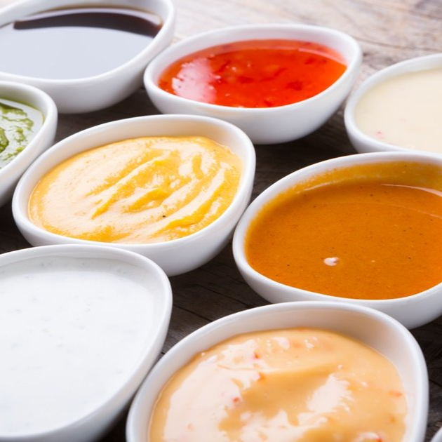 Aderezo Ranch, Chipotle, Cheddar, Salsa BBQ, Salsa.