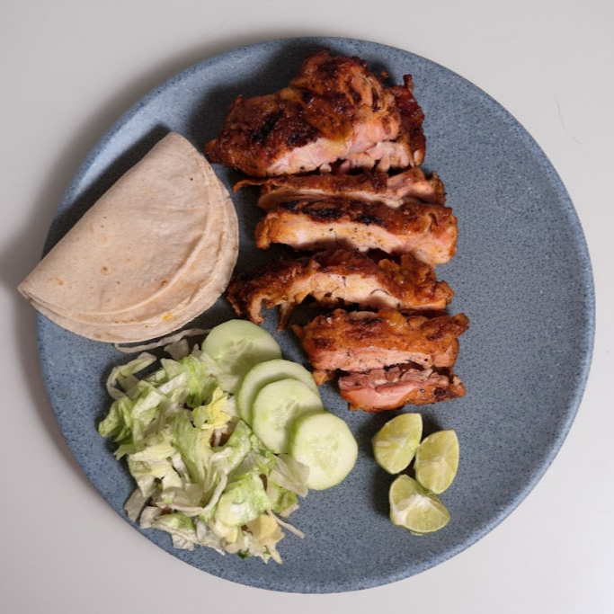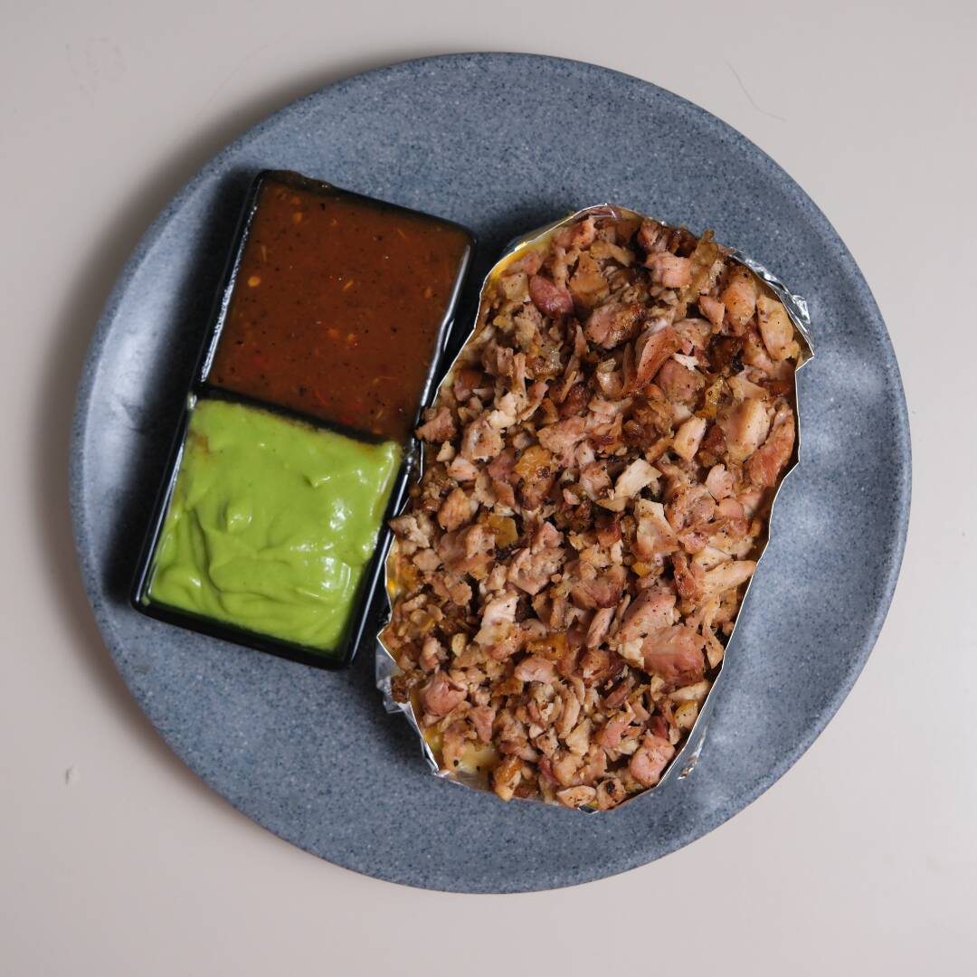 1 kg de delicioso pollo asado acompañado de verdura fresca, salsa, guacamole y tortillas.
