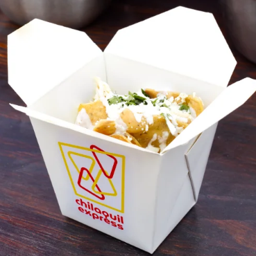 26oz Rellenas de totopos bañados en salsa verde o Roja según tu elección, acompañados de crema, cilantro, cebolla y queso.