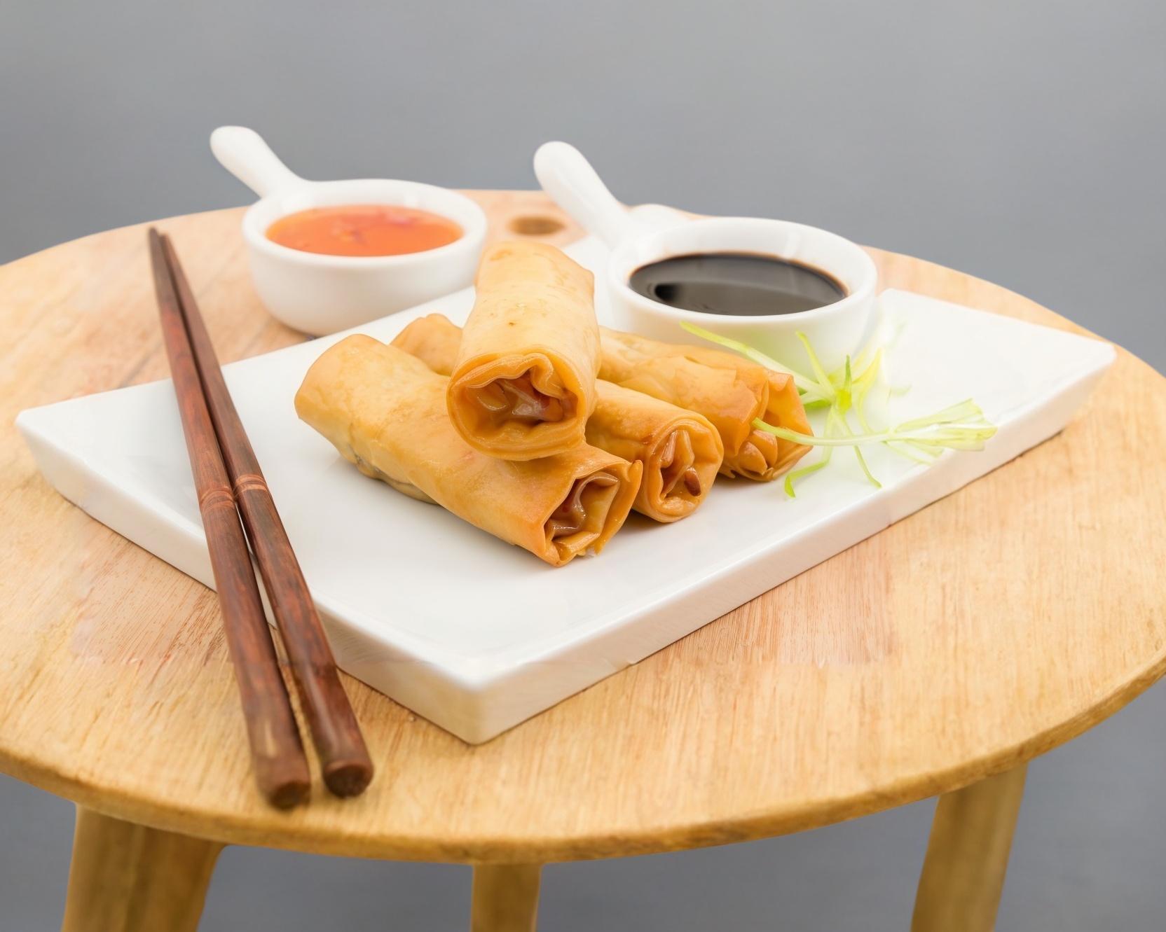 Elige 4 guisos y arroz, más 2 rollos de verduras, 2 rollos philadelphia, más litro de té.