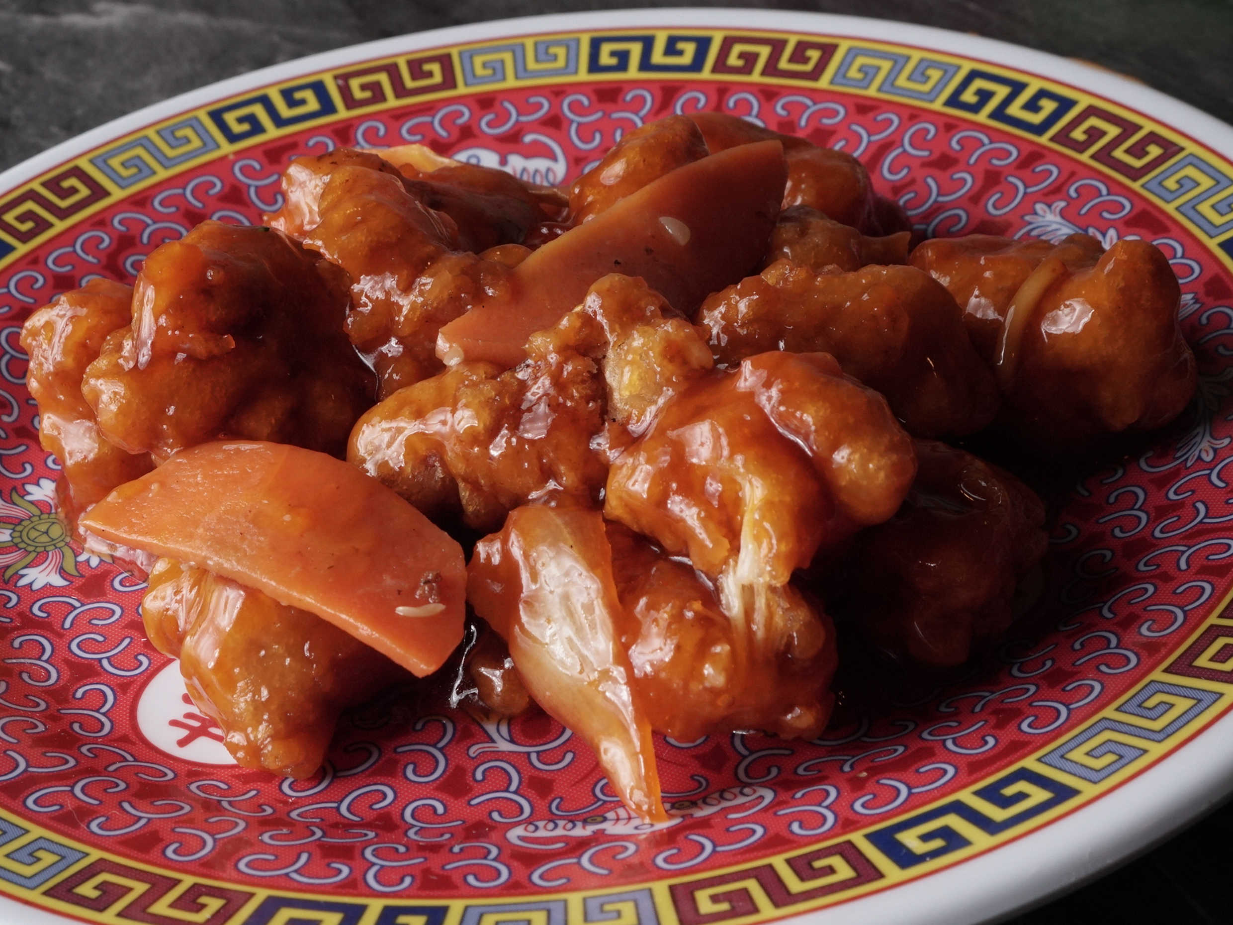 Rollo empanizado, pepino, pollo Teriyaki, queso crema, aguacate, salsa anguila y chipotle