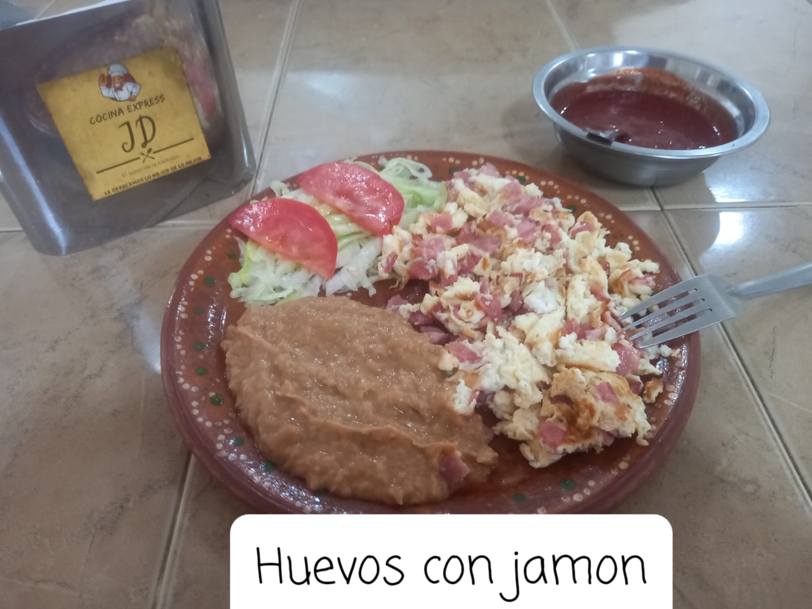 Huevos con Jamón*1 + Agua de Jamaica*1