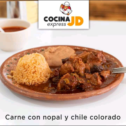 Carne con nopal y chile colorado + Bebida