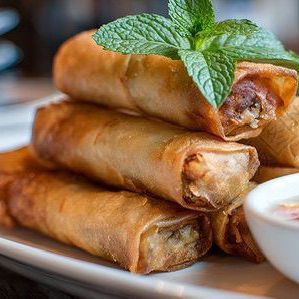Contiene camarón, arroz de sushi, alga nori, aguacate, pepino y queso crema y acompañado de salsa de soja.
