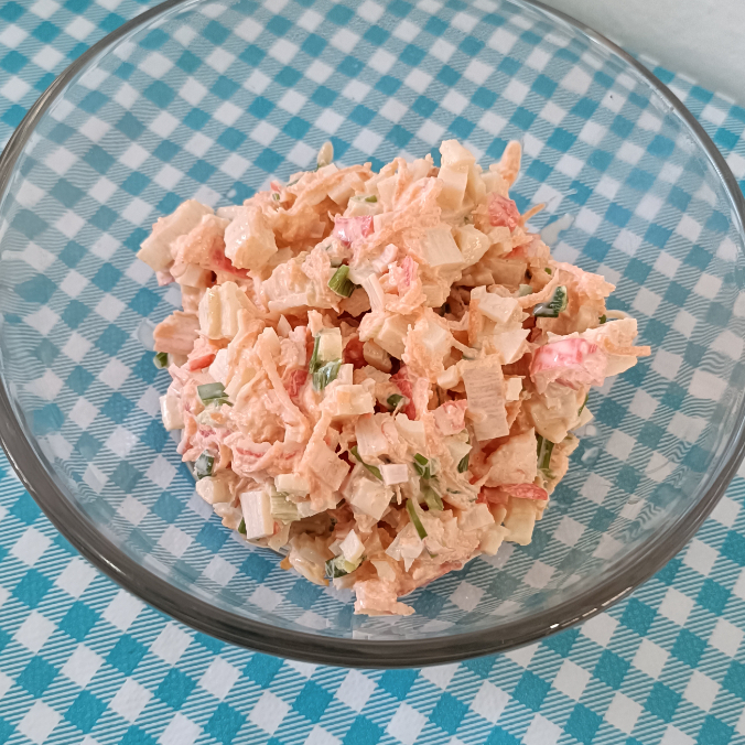 Surimi, chile serrano picadito, zanahoria, cebollín, siracha, mayonesa.