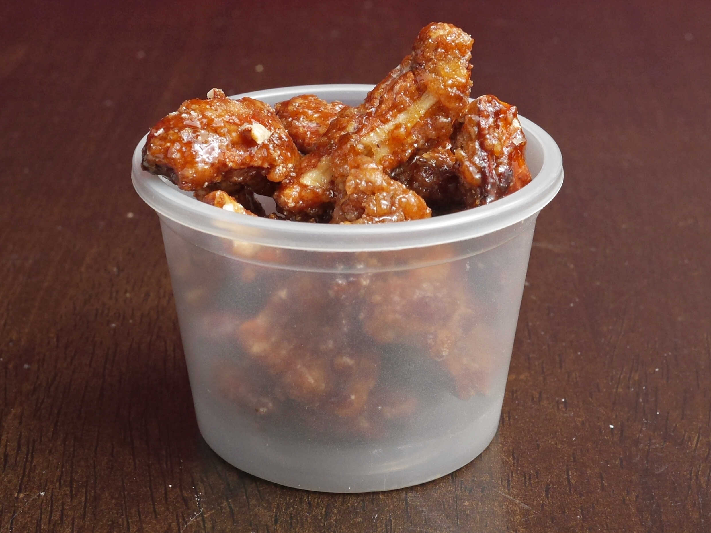 1 Porción de pollo, tiras de pollo, 2 porciones barra fría y aderezo.