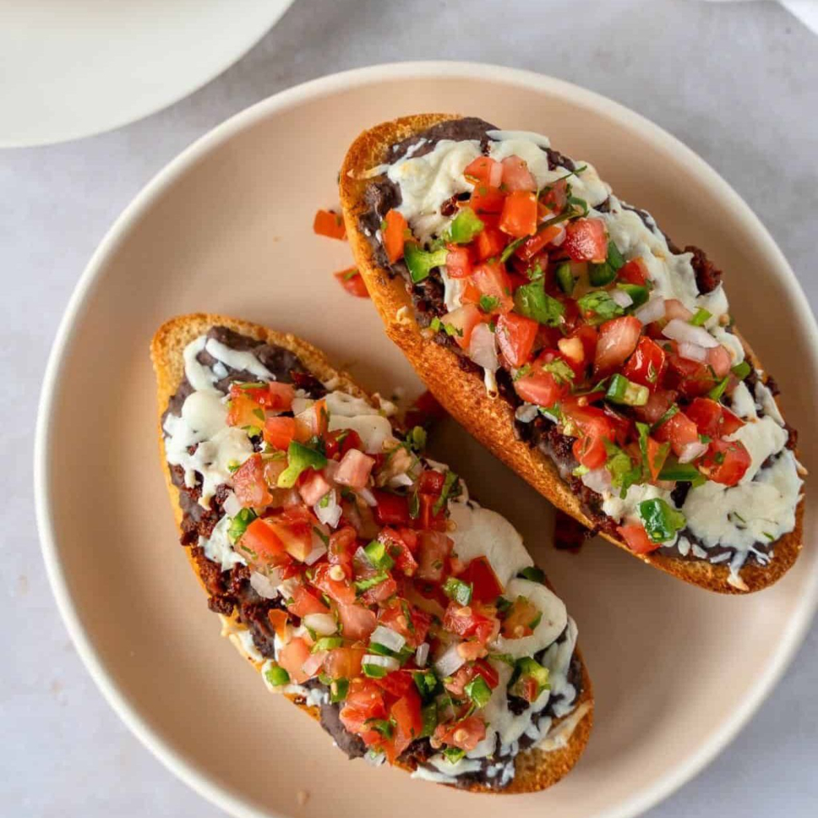 Los molletes que te encantan: frijoles,queso y pan tostado, simples pero siempre deliciosos.