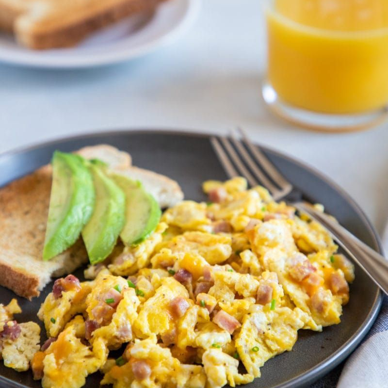 Deliciosos huevos revueltos con jamon frijol y aguacate