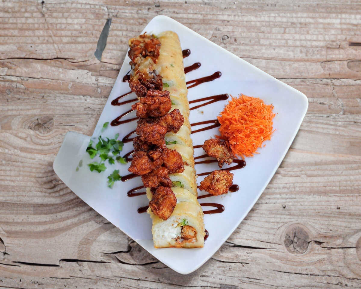 POR DENTRO: PHILA, PEPINO, AGUACATE, BONELESS. CUBIERTO DE QUESO GRATINADO Y BAÑADO EN SALSA DE TU ELECCION (BBQ O BUFFALO).(ROLLO DIVIDIDO EN 10PZ)
