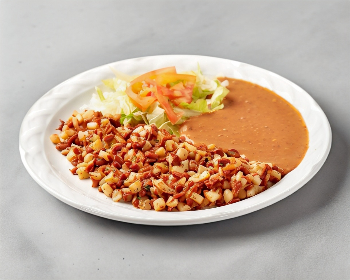 Chorizo con papas, acompañado de frijol y ensalada, tortillas a elegir.