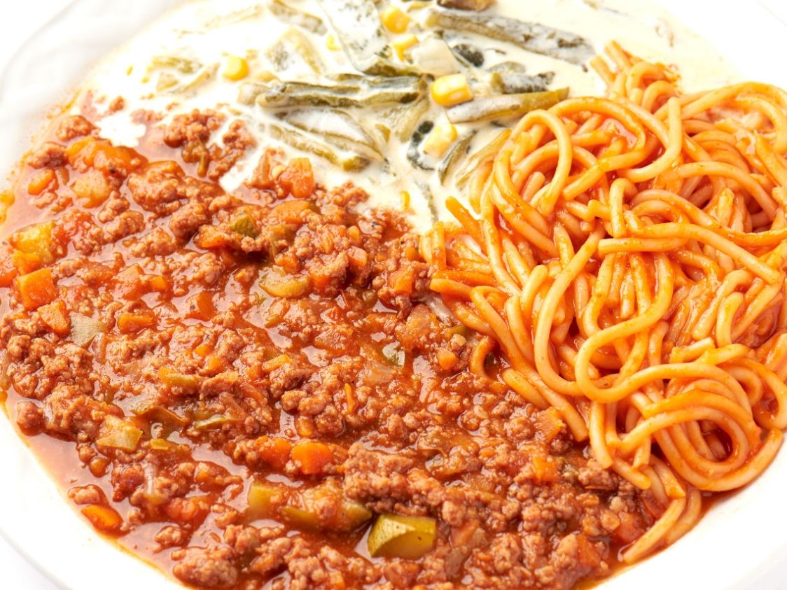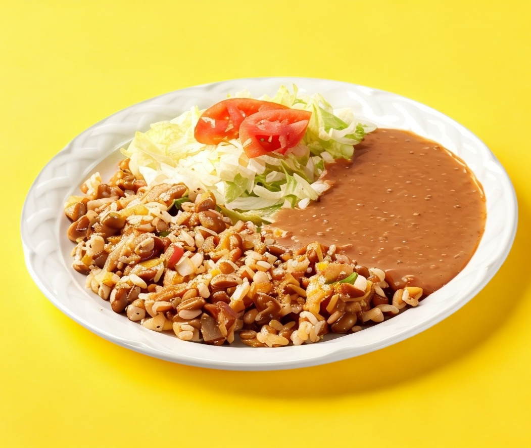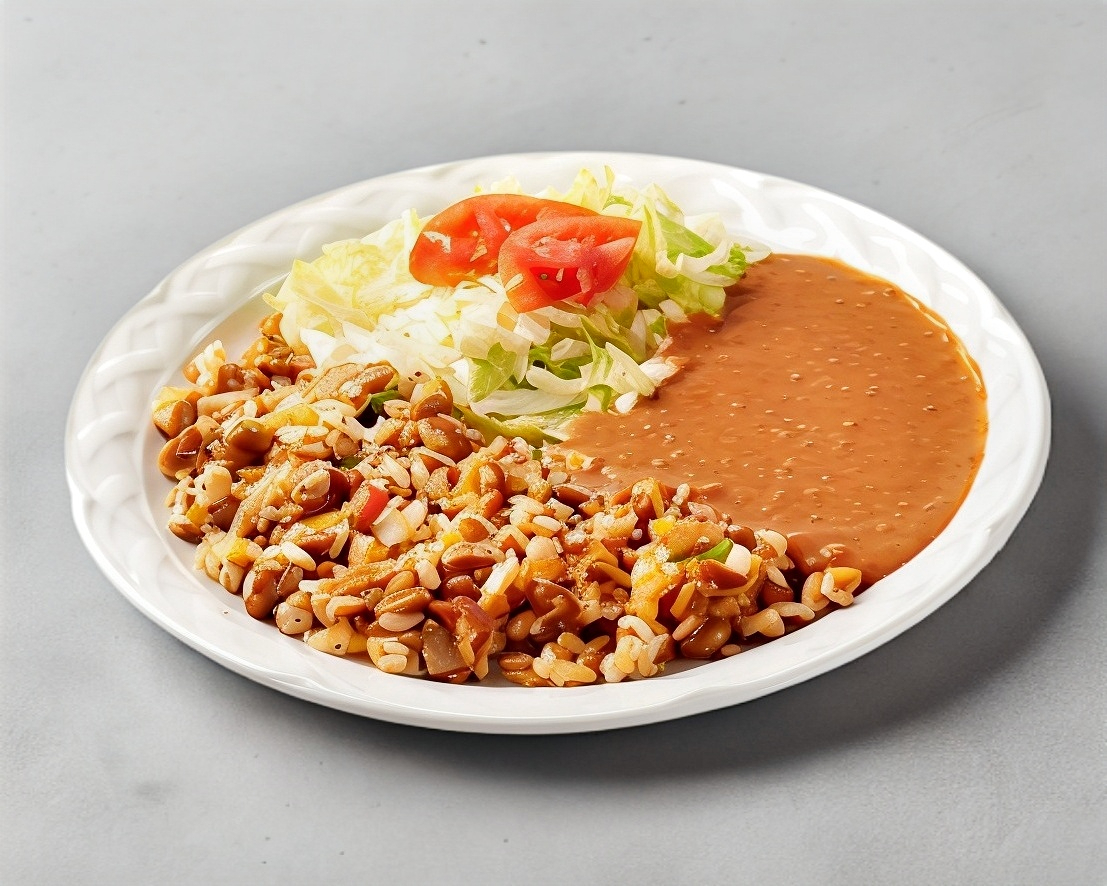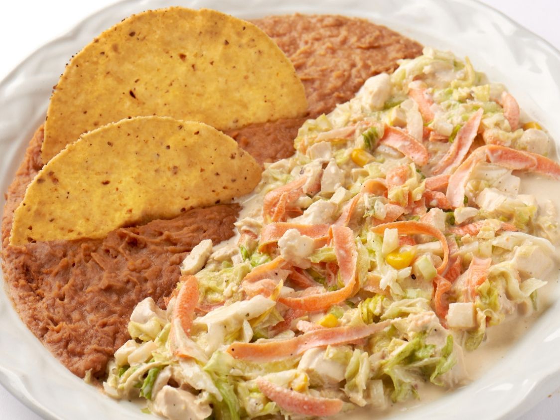Torta de huevo rellena de jamón y queso Chihuahua. Acompañado de ensalada y frijol y tortillas a elegir.