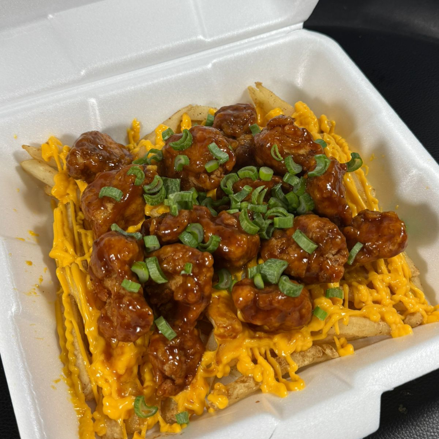 300gr de papas fritas, aderezo de queso, 200gr de boneless bañados en la salsa de su elección