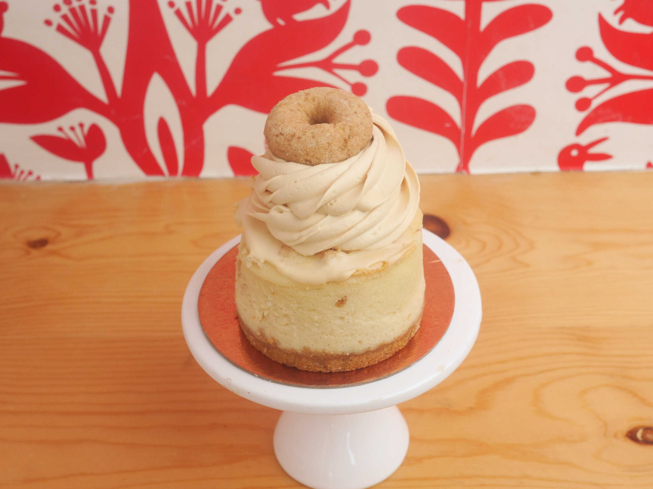 Cheseecake vainilla, compota de manzana, struessel de nuez y dulce de leche.