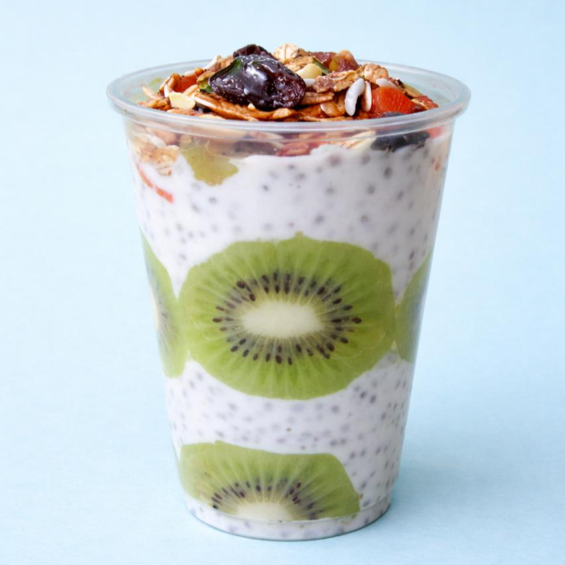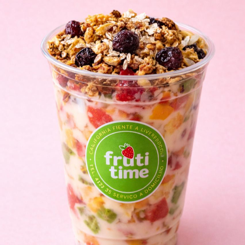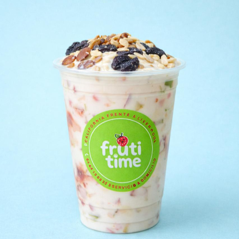 Yogurt natural con chía, fruta a elegir, granola y miel. 12 oz.