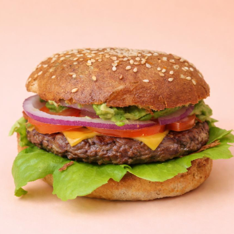 Pan integral, carne de res, queso chihuahua, lechuga, tomate, aguacate, cebolla morada , salsa BBQ, mayonesa.