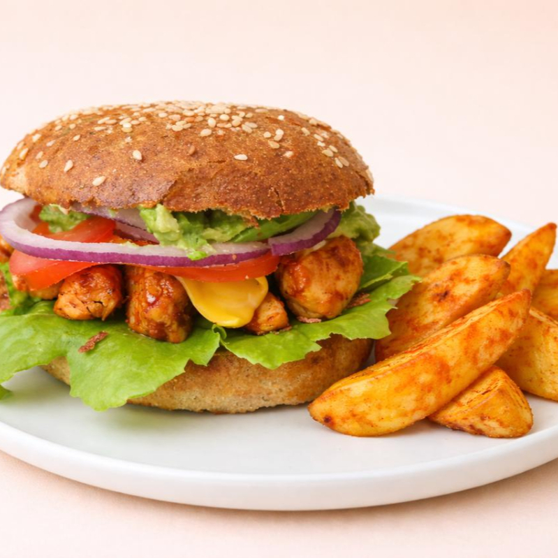 Hamburguesa de Pollo con Papas Horneadas