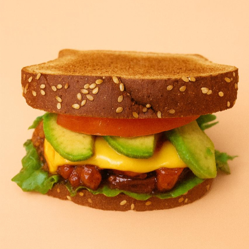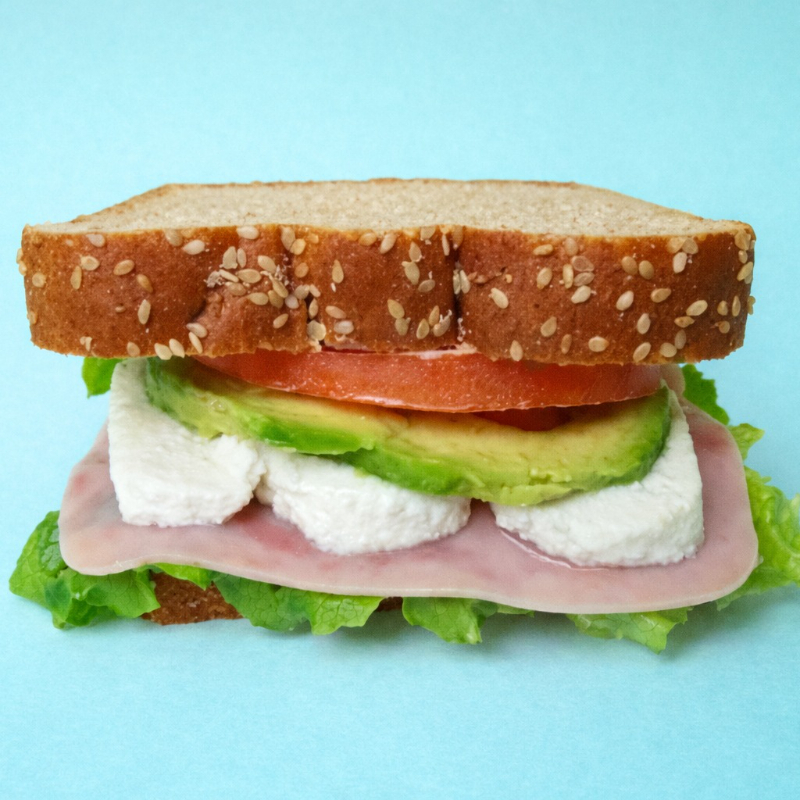 Pan integral, mayonesa, lechuga, jamón, queso a elegir, tomate, aguacate.
