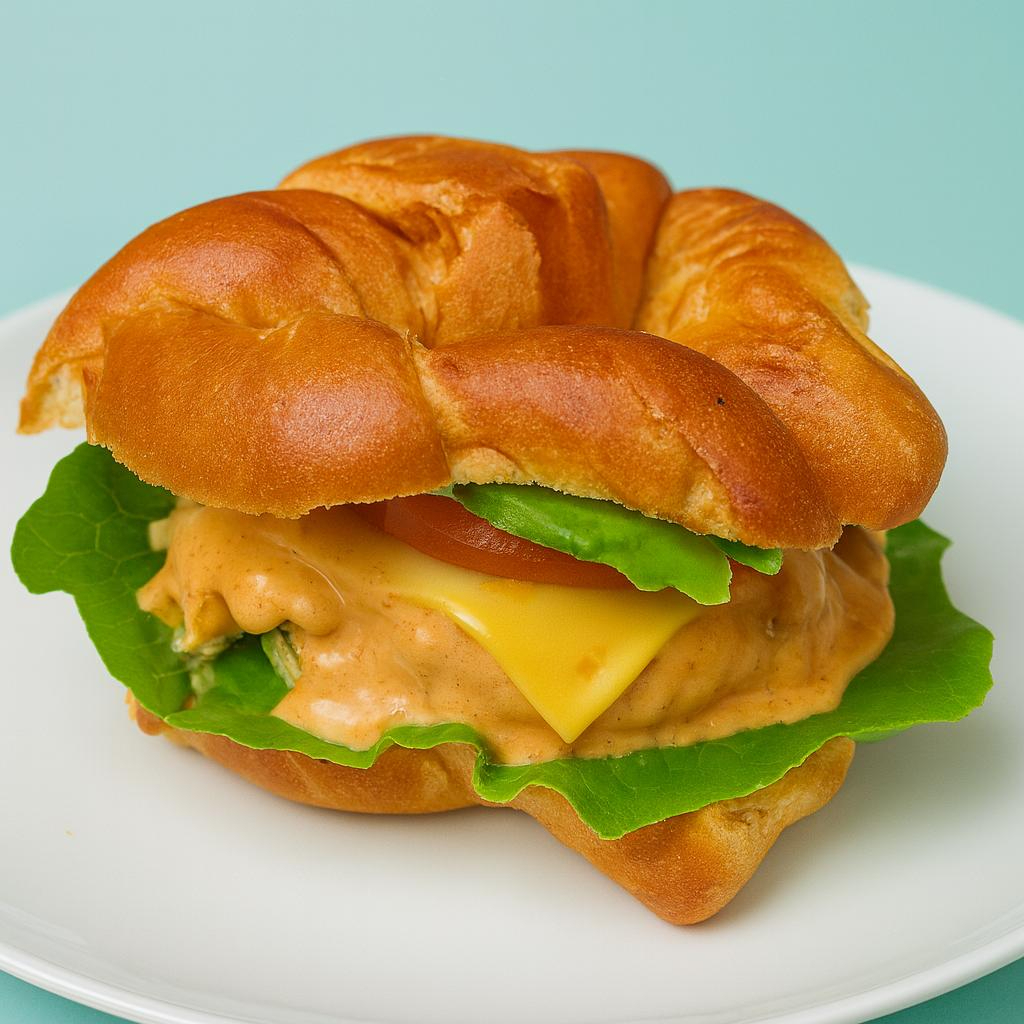 Pan de cuernito, mayonesa, lechuga, pollo a elegir, aderezo chipotle de la casa, queso americano, tomate, aguacate.