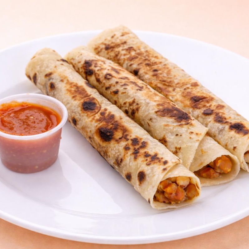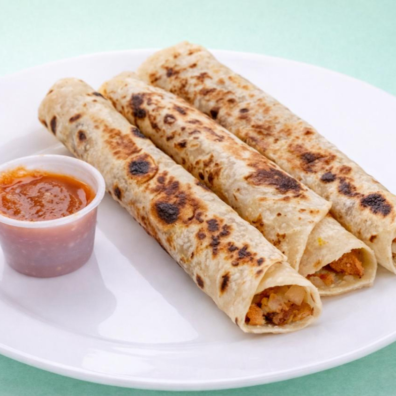 Orden de 2 urritos de chorizo con papa y 1 burrito de frijol, salsa de la casa.