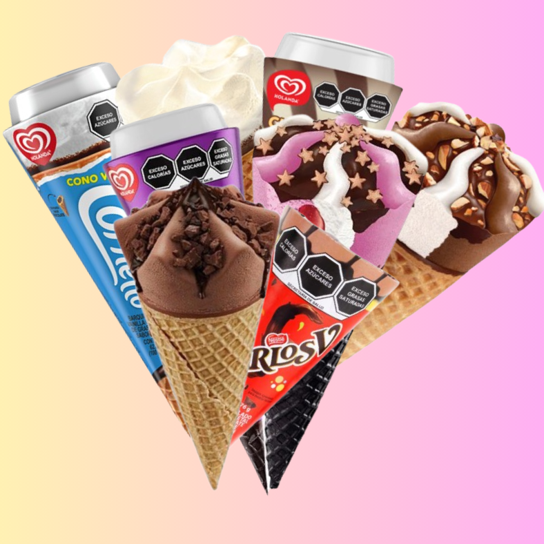 Cornetto Chocollage*1 + Mordisko Chocoavellana*1 + Choco Crem fresa con chocolate*1 + Choco Milk Holanda*1 + Magnum Clásica*1 + Paleta Helada KitKat 71 g*1 + Cono Helado Carlos V 76 g*1 + Paleta Helada Carlos V 38 g*1 + Crunch 61 g*1