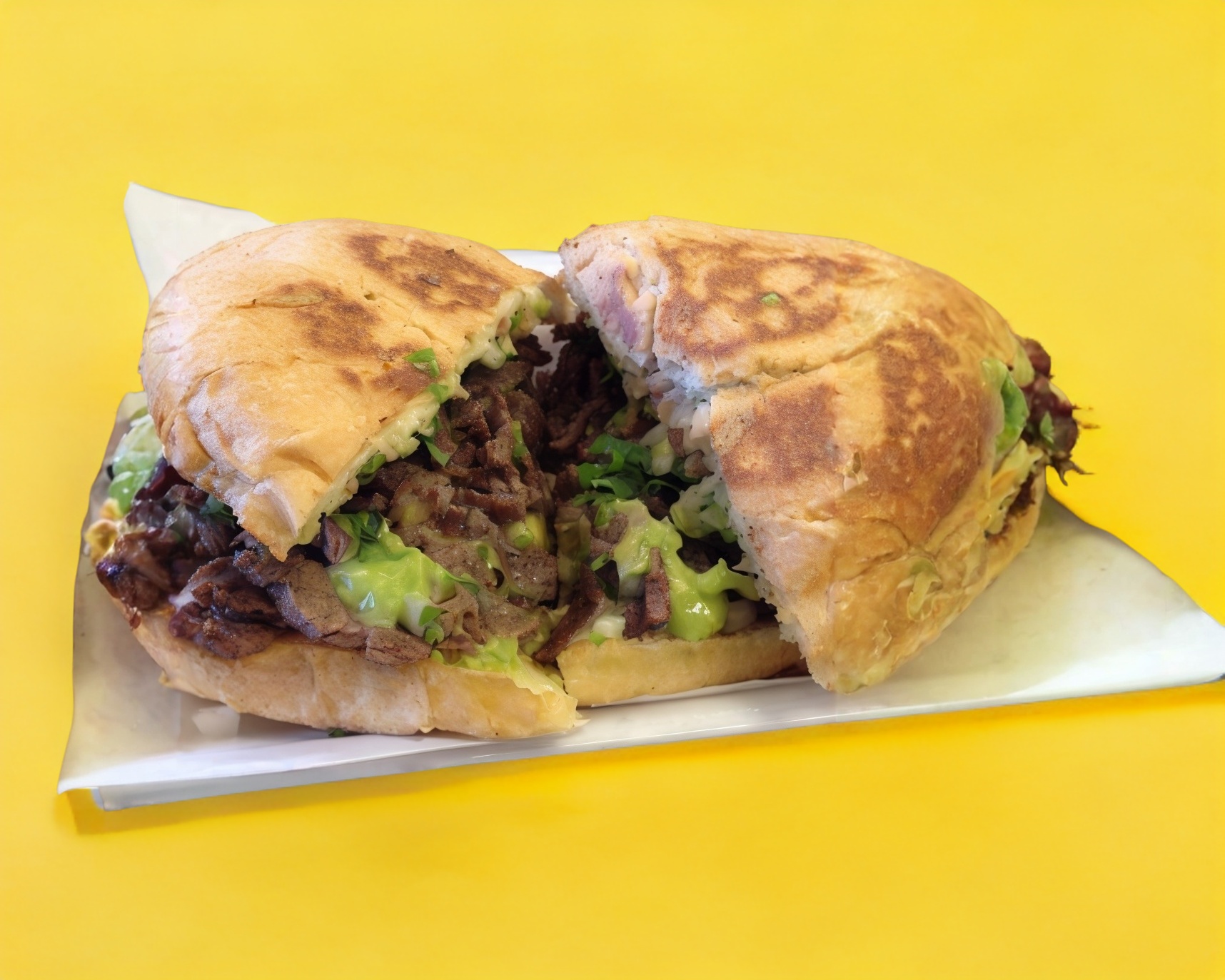 tortilla jumbo compartida en 2 carne asada al carbon,queso chihuahua,jamon, tocino acompañada de frijolles puercos, lechuga,tomate mayonesa,cebolla sadaa