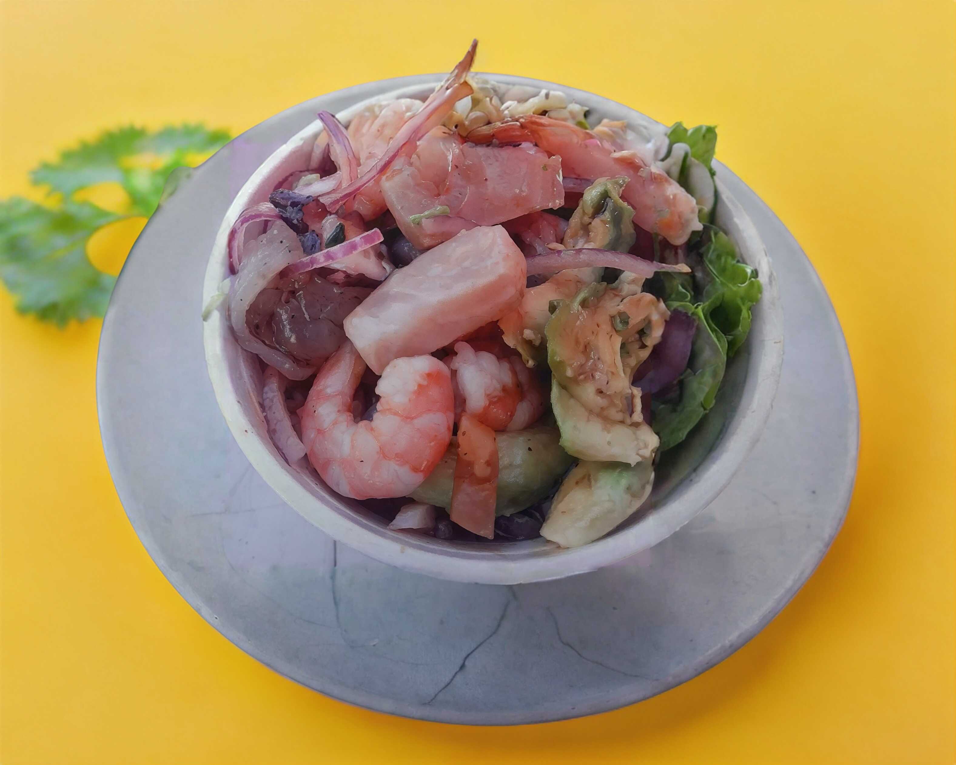 camaron crudo cocido, callo, pulpo,jaiba, ceviche de pescado y camaron