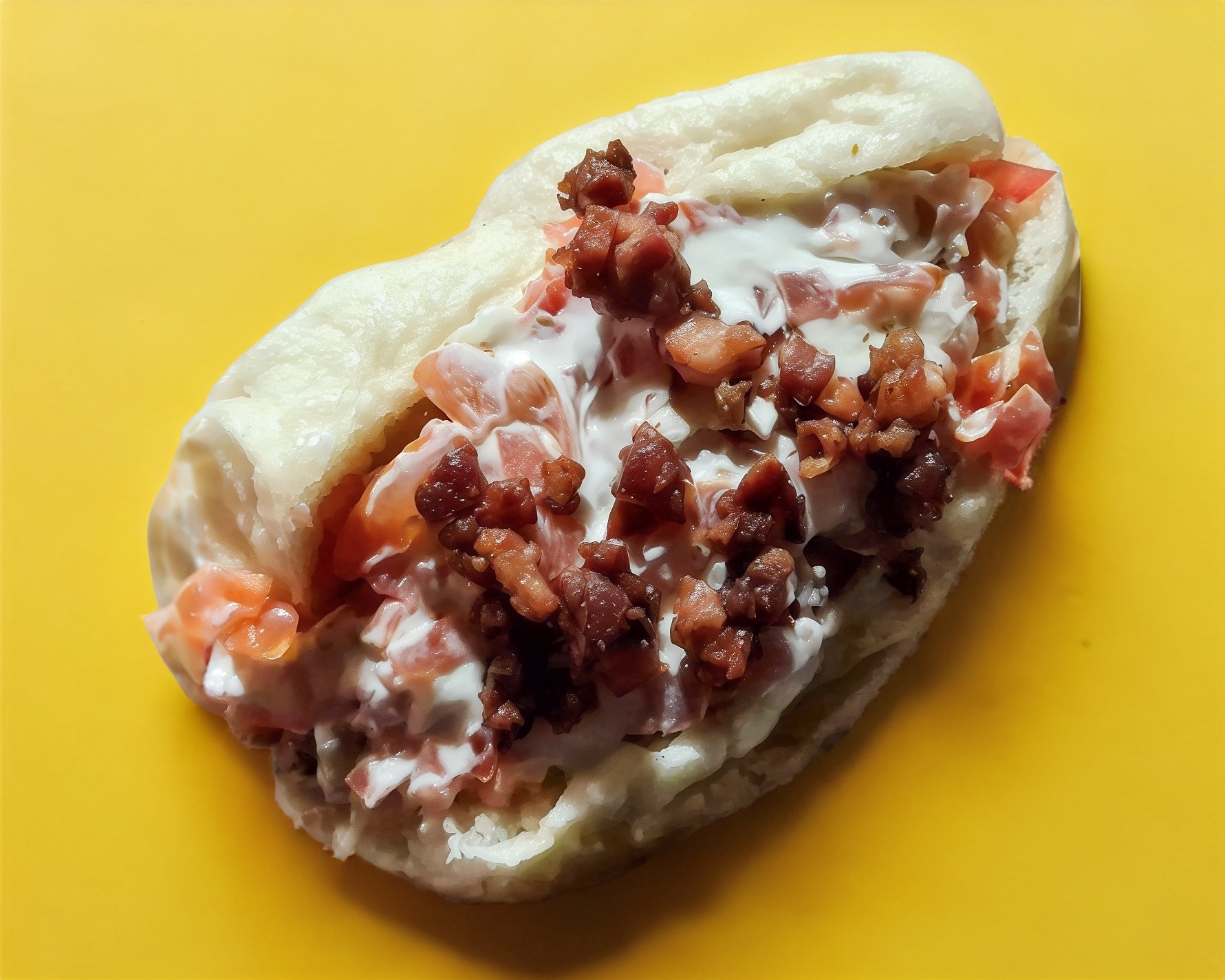 pan normal con salchicha rosarito ,tomate cebolla,mayonesa, queso crema philadelpia, tocino, incluye paoas a la francesa o sazonadas
