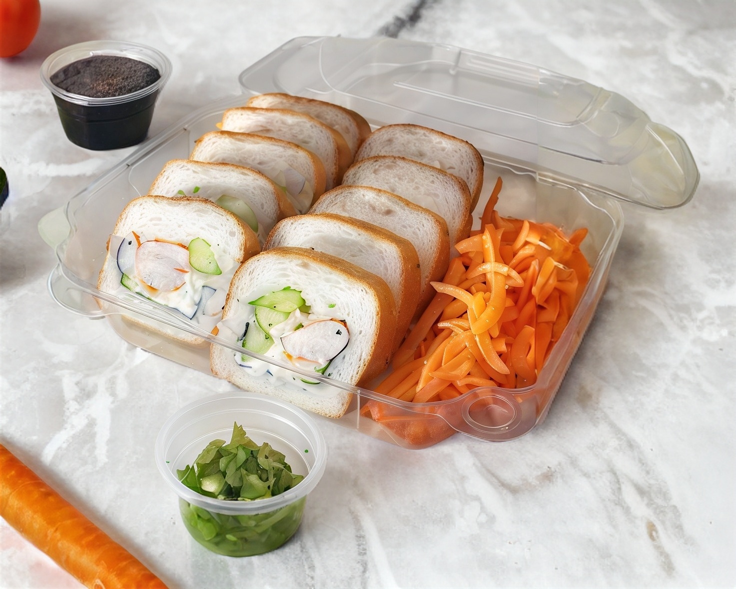 Zanahoria, queso crema, pepino y aguacate.